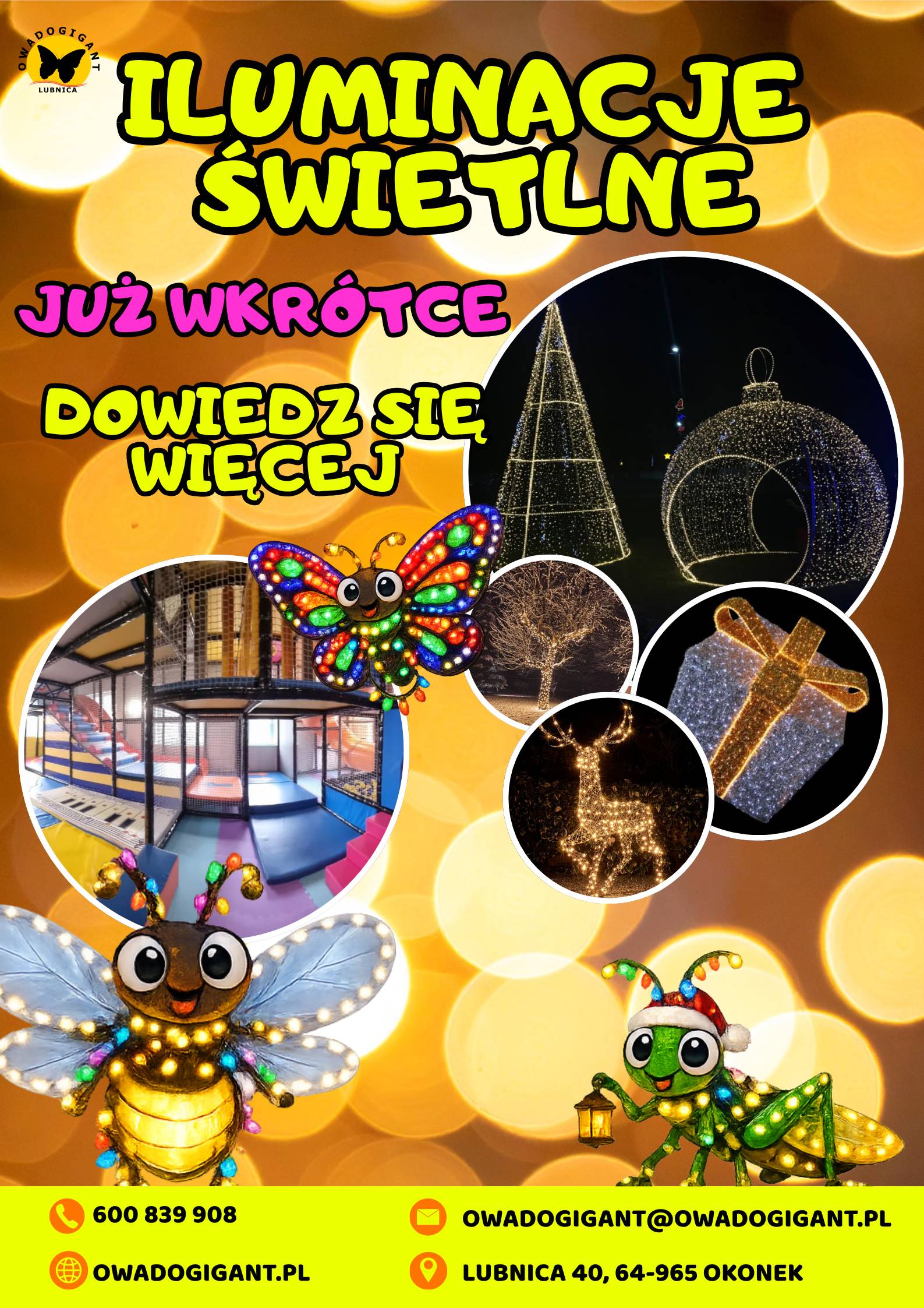 Iluminacje świetlne 2026-04-142026-04-14 Krzysztof Iluminacje świetlne 8 8 people viewed this event. Data i godzina - Lokalizacja Rodzinny Park Rozrywki Park Owadów „OWADOGIGANT” w LubnicyPodziel się ze znajomymi Facebook Twitter LinkedIn Xing Pinterest