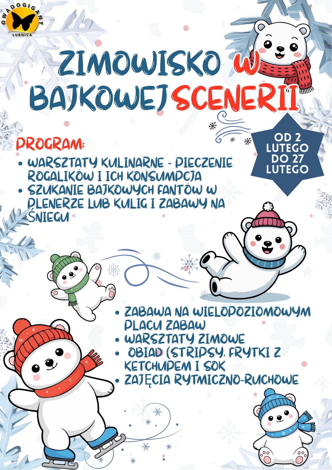 Zimowisko w bajkowej scenerii 2026-01-29 Krzysztof Zimowisko w bajkowej scenerii 23 23 people viewed this event. Data i godzina 2 lutego 2026 to 27 lutego 2026 Lokalizacja Rodzinny Park Rozrywki Park Owadów „OWADOGIGANT” w LubnicyPodziel się ze znajomymi Facebook Twitter LinkedIn Xing Pinterest